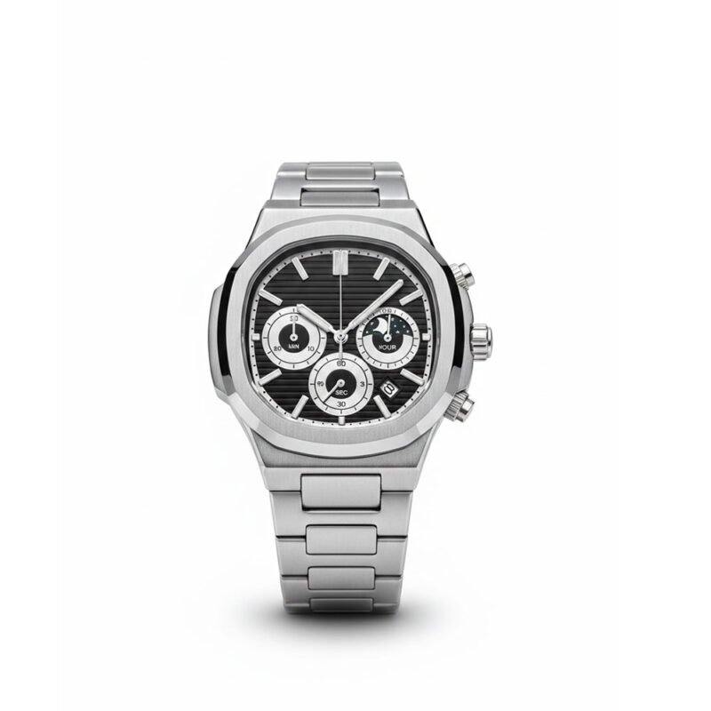 - Includes 60-minute 12-hour and small seconds counters for precision timing.Date Window at 4–5 O’clock