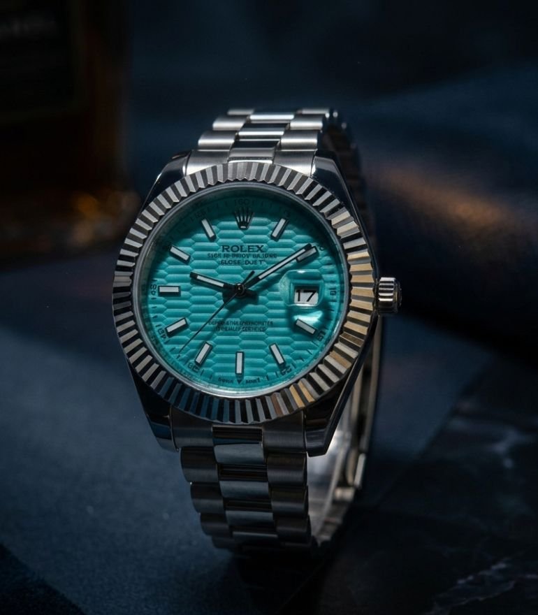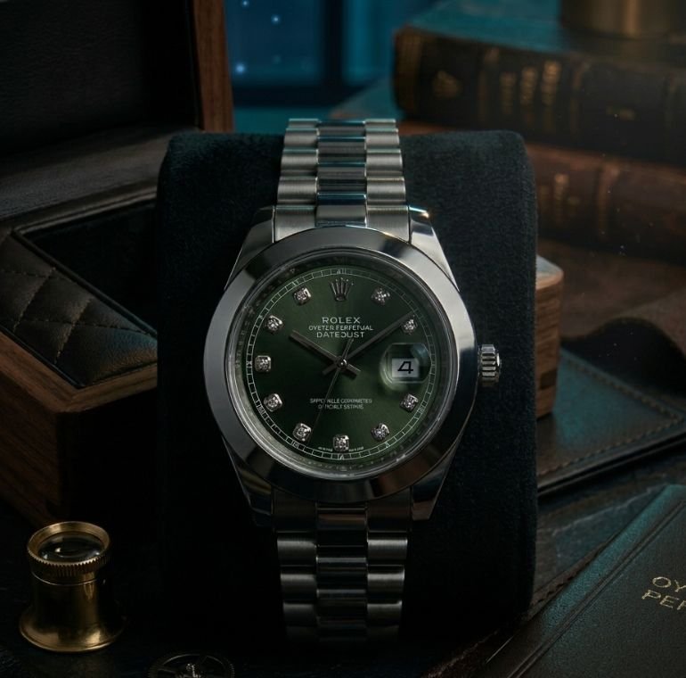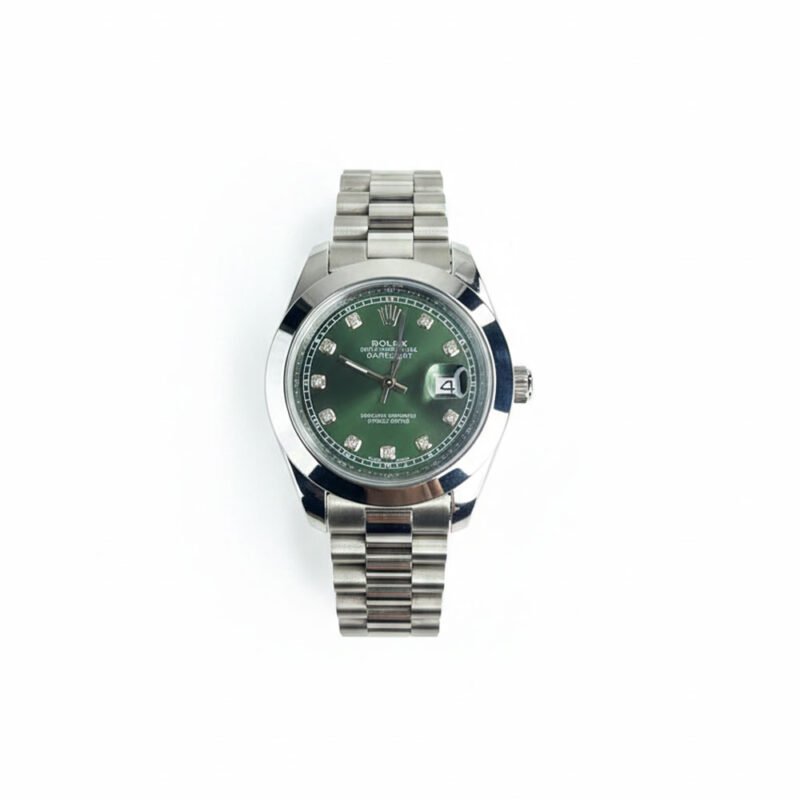 Rolex Date just Luxury Watch Silver Strap Green Dial