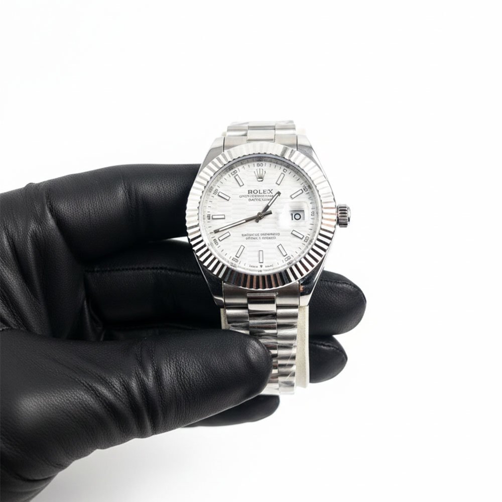 The Datejust is one of Rolex’s most iconic collections, admired for its versatility and timeless appeal. The silver bezel enhances the watch’s luxurious presence, while the white dial offers a pure and elegant aesthetic. Whether paired with formal attire or casual wear, this watch elevates your style effortlessly.